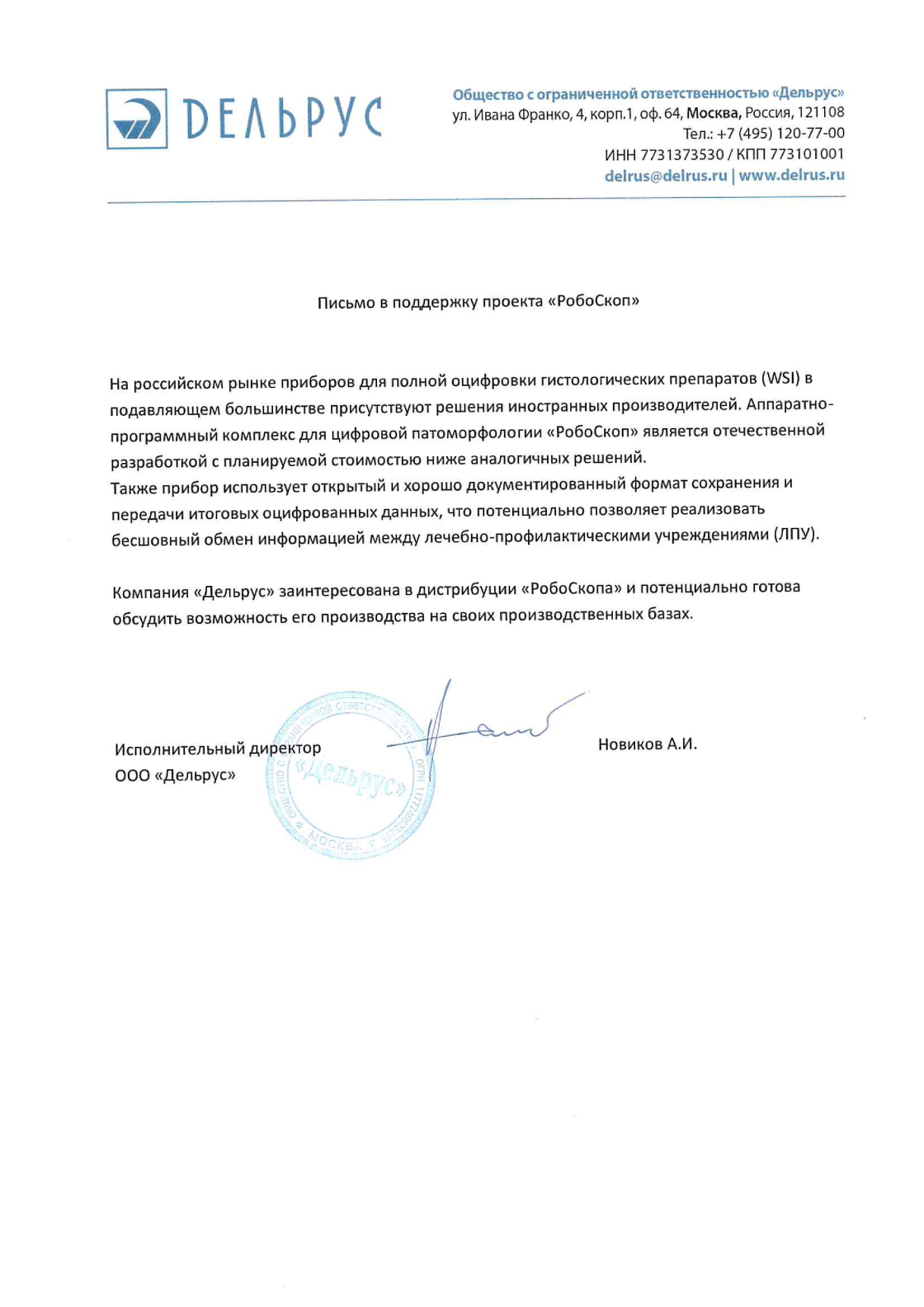 ООО «Робоскоп Патолоджи» – российский стартап, занимающийся разработками и исследованиями в области цифровой микроскопии, включая гистологию, цитологию, ветеринарию и пробоподготовку