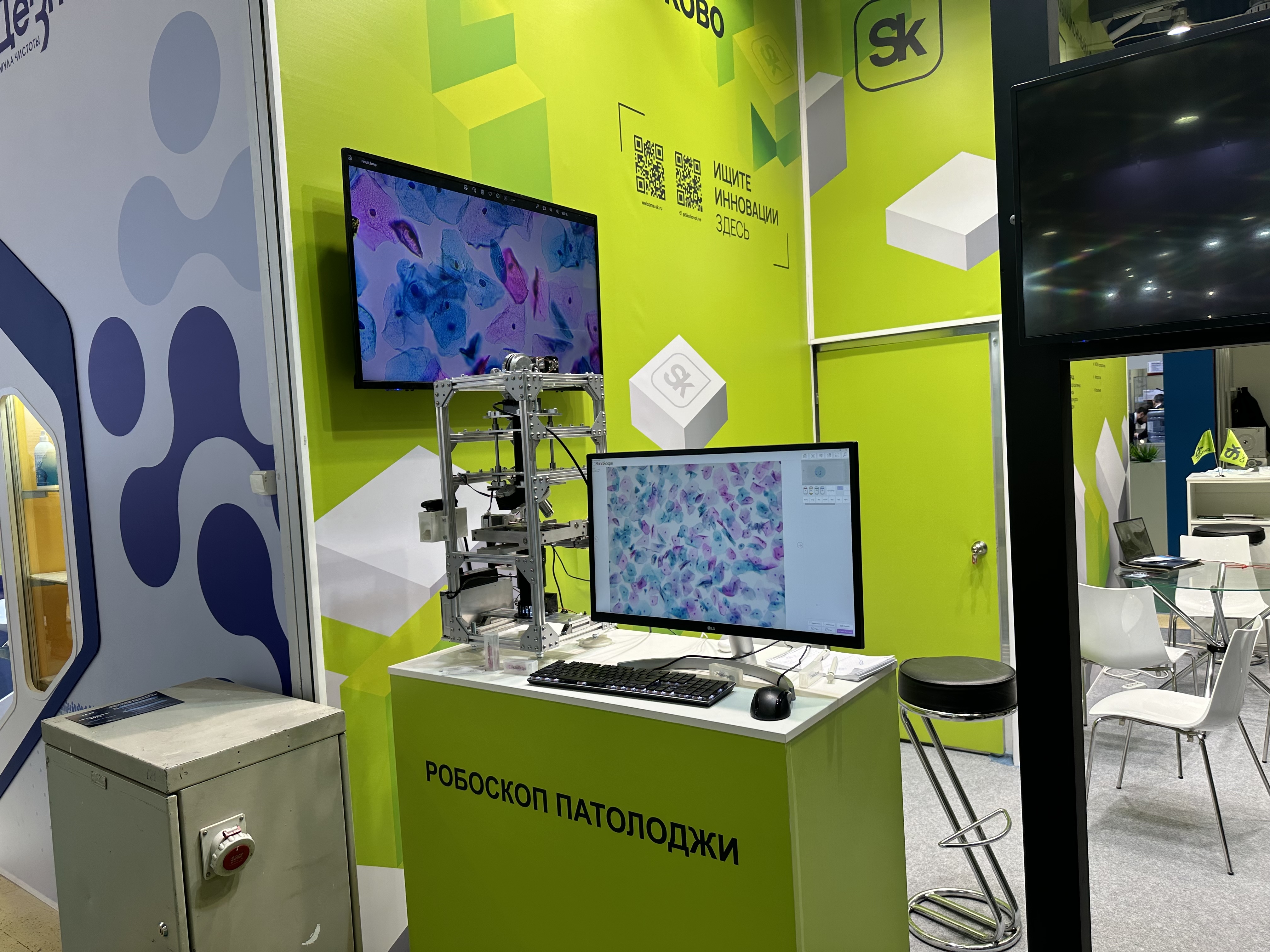 The RoboScope team presents its developments at the joint stand of the Skolkovo Foundation at Russian Healthcare Week 2023.